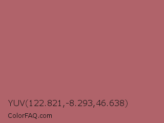 YUV 122.821,-8.293,46.638 Color is a normal red color and the nearest color is Deep Puce #a95c68. Hex code #b0636a and RGB value is rgb(176,99,106). In RGB color space, this color is composed of 69% red, 39% green, 42% blue, In CMYK color space, this color is composed of 0% cyan, 44% magenta, 40% yellow , 31% black , In HSL color space, this color has a hue angle of 355° , 33% saturation and 54% lightness.
