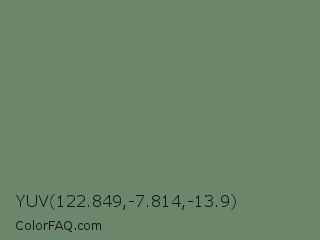 YUV 122.849,-7.814,-13.9 Color is a normal green color and the nearest color is Viridian Green #678975. Hex code #6b866b and RGB value is rgb(107,134,107). In RGB color space, this color is composed of 42% red, 53% green, 42% blue, In CMYK color space, this color is composed of 20% cyan, 0% magenta, 20% yellow , 47% black , In HSL color space, this color has a hue angle of 120° , 11% saturation and 47% lightness.