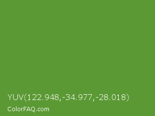 YUV 122.948,-34.977,-28.018 Color is a normal green color and the nearest color is Maximum Green #5e8c31. Hex code #5b9934 and RGB value is rgb(91,153,52). In RGB color space, this color is composed of 36% red, 60% green, 20% blue, In CMYK color space, this color is composed of 41% cyan, 0% magenta, 66% yellow , 40% black , In HSL color space, this color has a hue angle of 97° , 49% saturation and 40% lightness.