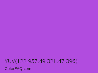 YUV 122.957,49.321,47.396 Color is a normal purple color and the nearest color is Medium Orchid #ba55d3. Hex code #b14cdf and RGB value is rgb(177,76,223). In RGB color space, this color is composed of 69% red, 30% green, 87% blue, In CMYK color space, this color is composed of 21% cyan, 66% magenta, 0% yellow , 13% black , In HSL color space, this color has a hue angle of 281° , 70% saturation and 59% lightness.