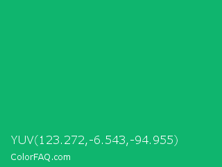 YUV 123.272,-6.543,-94.955 Color is a normal green color and the nearest color is Green Crayola #1cac78. Hex code #0fb56e and RGB value is rgb(15,181,110). In RGB color space, this color is composed of 6% red, 71% green, 43% blue, In CMYK color space, this color is composed of 92% cyan, 0% magenta, 39% yellow , 29% black , In HSL color space, this color has a hue angle of 154° , 85% saturation and 38% lightness.