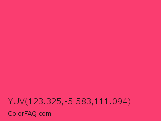 YUV 123.325,-5.583,111.094 Color is a light rose color and the nearest color is Magic Potion #ff4466. Hex code #fa3d70 and RGB value is rgb(250,61,112). In RGB color space, this color is composed of 98% red, 24% green, 44% blue, In CMYK color space, this color is composed of 0% cyan, 76% magenta, 55% yellow , 2% black , In HSL color space, this color has a hue angle of 344° , 95% saturation and 61% lightness.