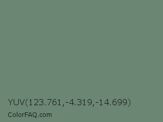 YUV 123.761,-4.319,-14.699 Color is a normal green color and the nearest color is Viridian Green #678975. Hex code #6b8673 and RGB value is rgb(107,134,115). In RGB color space, this color is composed of 42% red, 53% green, 45% blue, In CMYK color space, this color is composed of 20% cyan, 0% magenta, 14% yellow , 47% black , In HSL color space, this color has a hue angle of 138° , 11% saturation and 47% lightness.