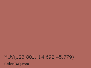 YUV 123.801,-14.692,45.779 Color is a normal red color and the nearest color is Santa Fe #b16d52. Hex code #b0675e and RGB value is rgb(176,103,94). In RGB color space, this color is composed of 69% red, 40% green, 37% blue, In CMYK color space, this color is composed of 0% cyan, 41% magenta, 47% yellow , 31% black , In HSL color space, this color has a hue angle of 7° , 34% saturation and 53% lightness.