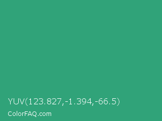 YUV 123.827,-1.394,-66.5 Color is a normal green color and the nearest color is Jungle Green #29ab87. Hex code #30a379 and RGB value is rgb(48,163,121). In RGB color space, this color is composed of 19% red, 64% green, 47% blue, In CMYK color space, this color is composed of 71% cyan, 0% magenta, 26% yellow , 36% black , In HSL color space, this color has a hue angle of 158° , 55% saturation and 41% lightness.