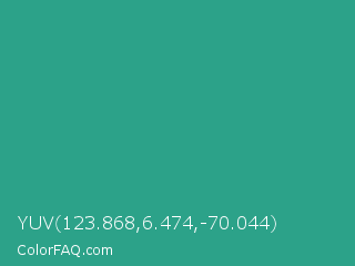 YUV 123.868,6.474,-70.044 Color is a normal cyan color and the nearest color is Jungle Green #29ab87. Hex code #2ca289 and RGB value is rgb(44,162,137). In RGB color space, this color is composed of 17% red, 64% green, 54% blue, In CMYK color space, this color is composed of 73% cyan, 0% magenta, 15% yellow , 36% black , In HSL color space, this color has a hue angle of 167° , 57% saturation and 40% lightness.