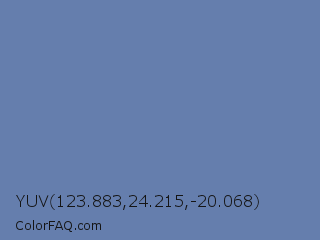 YUV 123.883,24.215,-20.068 Color is a normal blue color and the nearest color is Glaucous #6082b6. Hex code #657ead and RGB value is rgb(101,126,173). In RGB color space, this color is composed of 40% red, 49% green, 68% blue, In CMYK color space, this color is composed of 42% cyan, 27% magenta, 0% yellow , 32% black , In HSL color space, this color has a hue angle of 219° , 31% saturation and 54% lightness.