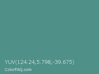 YUV 124.24,5.798,-39.675 Color is a normal cyan color and the nearest color is Wintergreen Dream #56887d. Hex code #4f9188 and RGB value is rgb(79,145,136). In RGB color space, this color is composed of 31% red, 57% green, 53% blue, In CMYK color space, this color is composed of 46% cyan, 0% magenta, 6% yellow , 43% black , In HSL color space, this color has a hue angle of 172° , 29% saturation and 44% lightness.