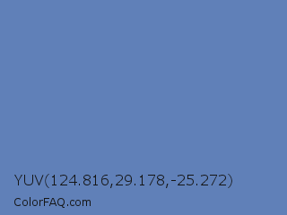 YUV 124.816,29.178,-25.272 Color is a normal blue color and the nearest color is Glaucous #6082b6. Hex code #6080b8 and RGB value is rgb(96,128,184). In RGB color space, this color is composed of 38% red, 50% green, 72% blue, In CMYK color space, this color is composed of 48% cyan, 30% magenta, 0% yellow , 28% black , In HSL color space, this color has a hue angle of 218° , 38% saturation and 55% lightness.