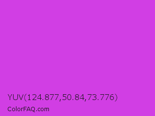 YUV 124.877,50.84,73.776 Color is a normal magenta color and the nearest color is Steel Pink #cc33cc. Hex code #d13ee4 and RGB value is rgb(209,62,228). In RGB color space, this color is composed of 82% red, 24% green, 89% blue, In CMYK color space, this color is composed of 8% cyan, 73% magenta, 0% yellow , 11% black , In HSL color space, this color has a hue angle of 293° , 75% saturation and 57% lightness.