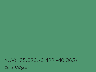 YUV 125.026,-6.422,-40.365 Color is a normal green color and the nearest color is Fruit Salad #4f9d5d. Hex code #4f9770 and RGB value is rgb(79,151,112). In RGB color space, this color is composed of 31% red, 59% green, 44% blue, In CMYK color space, this color is composed of 48% cyan, 0% magenta, 26% yellow , 41% black , In HSL color space, this color has a hue angle of 148° , 31% saturation and 45% lightness.