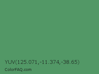 YUV 125.071,-11.374,-38.65 Color is a normal green color and the nearest color is Fruit Salad #4f9d5d. Hex code #519866 and RGB value is rgb(81,152,102). In RGB color space, this color is composed of 32% red, 60% green, 40% blue, In CMYK color space, this color is composed of 47% cyan, 0% magenta, 33% yellow , 40% black , In HSL color space, this color has a hue angle of 138° , 30% saturation and 46% lightness.