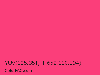YUV 125.351,-1.652,110.194 Color is a light rose color and the nearest color is Sasquatch Socks #ff4681. Hex code #fb3e7a and RGB value is rgb(251,62,122). In RGB color space, this color is composed of 98% red, 24% green, 48% blue, In CMYK color space, this color is composed of 0% cyan, 75% magenta, 51% yellow , 2% black , In HSL color space, this color has a hue angle of 341° , 96% saturation and 61% lightness.