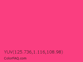 YUV 125.736,1.116,108.98 Color is a light rose color and the nearest color is Sasquatch Socks #ff4681. Hex code #fa3e80 and RGB value is rgb(250,62,128). In RGB color space, this color is composed of 98% red, 24% green, 50% blue, In CMYK color space, this color is composed of 0% cyan, 75% magenta, 49% yellow , 2% black , In HSL color space, this color has a hue angle of 339° , 95% saturation and 61% lightness.