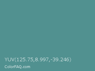 YUV 125.75,8.997,-39.246 Color is a normal cyan color and the nearest color is Steel Teal #5f8a8b. Hex code #519190 and RGB value is rgb(81,145,144). In RGB color space, this color is composed of 32% red, 57% green, 56% blue, In CMYK color space, this color is composed of 44% cyan, 0% magenta, 1% yellow , 43% black , In HSL color space, this color has a hue angle of 179° , 28% saturation and 44% lightness.