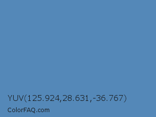 YUV 125.924,28.631,-36.767 Color is a normal blue color and the nearest color is Silver Lake Blue #5d89ba. Hex code #5488b8 and RGB value is rgb(84,136,184). In RGB color space, this color is composed of 33% red, 53% green, 72% blue, In CMYK color space, this color is composed of 54% cyan, 26% magenta, 0% yellow , 28% black , In HSL color space, this color has a hue angle of 209° , 41% saturation and 53% lightness.