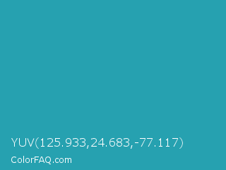 YUV 125.933,24.683,-77.117 Color is a normal cyan color and the nearest color is Eastern Blue #1e9ab0. Hex code #26a1b0 and RGB value is rgb(38,161,176). In RGB color space, this color is composed of 15% red, 63% green, 69% blue, In CMYK color space, this color is composed of 78% cyan, 9% magenta, 0% yellow , 31% black , In HSL color space, this color has a hue angle of 187° , 64% saturation and 42% lightness.