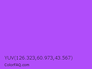 YUV 126.323,60.973,43.567 Color is a light purple color and the nearest color is Navy Purple #9457eb. Hex code #b04dfa and RGB value is rgb(176,77,250). In RGB color space, this color is composed of 69% red, 30% green, 98% blue, In CMYK color space, this color is composed of 30% cyan, 69% magenta, 0% yellow , 2% black , In HSL color space, this color has a hue angle of 274° , 95% saturation and 64% lightness.