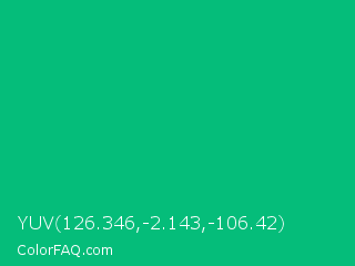 YUV 126.346,-2.143,-106.42 Color is a normal green color and the nearest color is Green Munsell #00a877. Hex code #05bd7a and RGB value is rgb(5,189,122). In RGB color space, this color is composed of 2% red, 74% green, 48% blue, In CMYK color space, this color is composed of 97% cyan, 0% magenta, 35% yellow , 26% black , In HSL color space, this color has a hue angle of 158° , 95% saturation and 38% lightness.