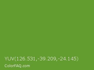 YUV 126.531,-39.209,-24.145 Color is a normal green color and the nearest color is Maximum Green #5e8c31. Hex code #639c2f and RGB value is rgb(99,156,47). In RGB color space, this color is composed of 39% red, 61% green, 18% blue, In CMYK color space, this color is composed of 37% cyan, 0% magenta, 70% yellow , 39% black , In HSL color space, this color has a hue angle of 91° , 54% saturation and 40% lightness.