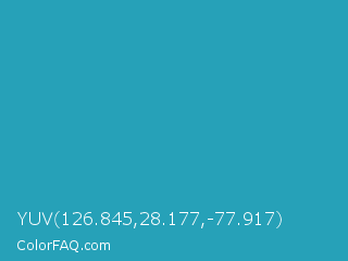 YUV 126.845,28.177,-77.917 Color is a normal cyan color and the nearest color is Eastern Blue #1e9ab0. Hex code #26a1b8 and RGB value is rgb(38,161,184). In RGB color space, this color is composed of 15% red, 63% green, 72% blue, In CMYK color space, this color is composed of 79% cyan, 13% magenta, 0% yellow , 28% black , In HSL color space, this color has a hue angle of 189° , 66% saturation and 44% lightness.