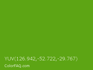 YUV 126.942,-52.722,-29.767 Color is a normal green color and the nearest color is Christi #67a712. Hex code #5da514 and RGB value is rgb(93,165,20). In RGB color space, this color is composed of 36% red, 65% green, 8% blue, In CMYK color space, this color is composed of 44% cyan, 0% magenta, 88% yellow , 35% black , In HSL color space, this color has a hue angle of 90° , 78% saturation and 36% lightness.