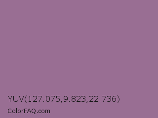 YUV 127.075,9.823,22.736 Color is a normal magenta color and the nearest color is Mountbatten Pink #997a8d. Hex code #996e93 and RGB value is rgb(153,110,147). In RGB color space, this color is composed of 60% red, 43% green, 58% blue, In CMYK color space, this color is composed of 0% cyan, 28% magenta, 4% yellow , 40% black , In HSL color space, this color has a hue angle of 308° , 17% saturation and 52% lightness.