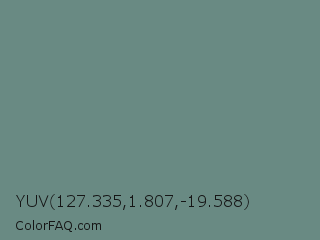 YUV 127.335,1.807,-19.588 Color is a normal cyan color and the nearest color is Blue Smoke #748881. Hex code #698a83 and RGB value is rgb(105,138,131). In RGB color space, this color is composed of 41% red, 54% green, 51% blue, In CMYK color space, this color is composed of 24% cyan, 0% magenta, 5% yellow , 46% black , In HSL color space, this color has a hue angle of 167° , 14% saturation and 48% lightness.