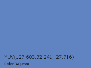 YUV 127.603,32.241,-27.716 Color is a normal blue color and the nearest color is Silver Lake Blue #5d89ba. Hex code #6083c1 and RGB value is rgb(96,131,193). In RGB color space, this color is composed of 38% red, 51% green, 76% blue, In CMYK color space, this color is composed of 50% cyan, 32% magenta, 0% yellow , 24% black , In HSL color space, this color has a hue angle of 218° , 44% saturation and 57% lightness.