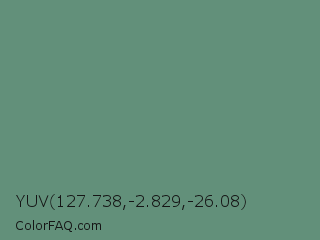 YUV 127.738,-2.829,-26.08 Color is a normal green color and the nearest color is Viridian Green #678975. Hex code #62907a and RGB value is rgb(98,144,122). In RGB color space, this color is composed of 38% red, 56% green, 48% blue, In CMYK color space, this color is composed of 32% cyan, 0% magenta, 15% yellow , 44% black , In HSL color space, this color has a hue angle of 151° , 19% saturation and 47% lightness.