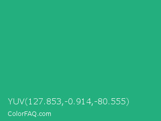 YUV 127.853,-0.914,-80.555 Color is a normal green color and the nearest color is Green Crayola #1cac78. Hex code #24af7e and RGB value is rgb(36,175,126). In RGB color space, this color is composed of 14% red, 69% green, 49% blue, In CMYK color space, this color is composed of 79% cyan, 0% magenta, 28% yellow , 31% black , In HSL color space, this color has a hue angle of 159° , 66% saturation and 41% lightness.