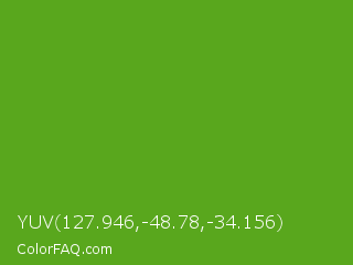 YUV 127.946,-48.78,-34.156 Color is a normal green color and the nearest color is Christi #67a712. Hex code #59a71d and RGB value is rgb(89,167,29). In RGB color space, this color is composed of 35% red, 65% green, 11% blue, In CMYK color space, this color is composed of 47% cyan, 0% magenta, 83% yellow , 35% black , In HSL color space, this color has a hue angle of 94° , 70% saturation and 38% lightness.