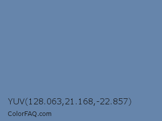 YUV 128.063,21.168,-22.857 Color is a normal blue color and the nearest color is Air Force Blue RAF #5d8aa8. Hex code #6685ab and RGB value is rgb(102,133,171). In RGB color space, this color is composed of 40% red, 52% green, 67% blue, In CMYK color space, this color is composed of 40% cyan, 22% magenta, 0% yellow , 33% black , In HSL color space, this color has a hue angle of 213° , 29% saturation and 54% lightness.