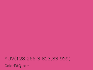 YUV 128.266,3.813,83.959 Color is a normal rose color and the nearest color is Fandango Pink #de5285. Hex code #e04e88 and RGB value is rgb(224,78,136). In RGB color space, this color is composed of 88% red, 31% green, 53% blue, In CMYK color space, this color is composed of 0% cyan, 65% magenta, 39% yellow , 12% black , In HSL color space, this color has a hue angle of 336° , 70% saturation and 59% lightness.