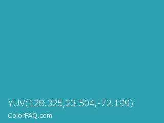 YUV 128.325,23.504,-72.199 Color is a normal cyan color and the nearest color is Eastern Blue #1e9ab0. Hex code #2ea1b0 and RGB value is rgb(46,161,176). In RGB color space, this color is composed of 18% red, 63% green, 69% blue, In CMYK color space, this color is composed of 74% cyan, 9% magenta, 0% yellow , 31% black , In HSL color space, this color has a hue angle of 187° , 59% saturation and 44% lightness.