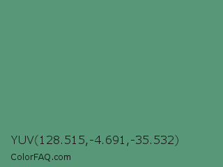 YUV 128.515,-4.691,-35.532 Color is a normal green color and the nearest color is Wintergreen Dream #56887d. Hex code #589777 and RGB value is rgb(88,151,119). In RGB color space, this color is composed of 35% red, 59% green, 47% blue, In CMYK color space, this color is composed of 42% cyan, 0% magenta, 21% yellow , 41% black , In HSL color space, this color has a hue angle of 150° , 26% saturation and 47% lightness.