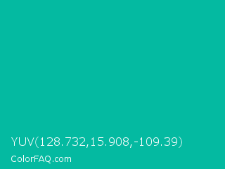 YUV 128.732,15.908,-109.39 Color is a normal cyan color and the nearest color is Amazonite #00c4b0. Hex code #04baa1 and RGB value is rgb(4,186,161). In RGB color space, this color is composed of 2% red, 73% green, 63% blue, In CMYK color space, this color is composed of 98% cyan, 0% magenta, 13% yellow , 27% black , In HSL color space, this color has a hue angle of 172° , 96% saturation and 37% lightness.