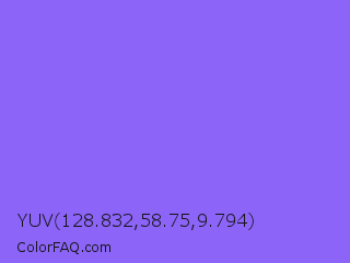 YUV 128.832,58.75,9.794 Color is a light indigo color and the nearest color is Navy Purple #9457eb. Hex code #8c64f8 and RGB value is rgb(140,100,248). In RGB color space, this color is composed of 55% red, 39% green, 97% blue, In CMYK color space, this color is composed of 44% cyan, 60% magenta, 0% yellow , 3% black , In HSL color space, this color has a hue angle of 256° , 91% saturation and 68% lightness.