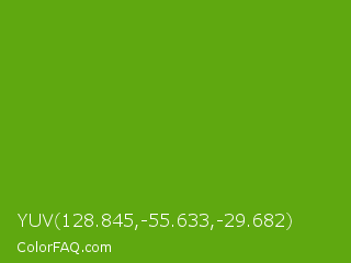 YUV 128.845,-55.633,-29.682 Color is a normal green color and the nearest color is Christi #67a712. Hex code #5fa810 and RGB value is rgb(95,168,16). In RGB color space, this color is composed of 37% red, 66% green, 6% blue, In CMYK color space, this color is composed of 43% cyan, 0% magenta, 90% yellow , 34% black , In HSL color space, this color has a hue angle of 89° , 83% saturation and 36% lightness.
