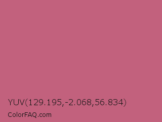 YUV 129.195,-2.068,56.834 Color is a normal rose color and the nearest color is Cinnamon Satin #cd607e. Hex code #c2617d and RGB value is rgb(194,97,125). In RGB color space, this color is composed of 76% red, 38% green, 49% blue, In CMYK color space, this color is composed of 0% cyan, 50% magenta, 36% yellow , 24% black , In HSL color space, this color has a hue angle of 343° , 44% saturation and 57% lightness.