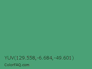 YUV 129.558,-6.684,-49.601 Color is a normal green color and the nearest color is Ocean Green #41aa78. Hex code #49a174 and RGB value is rgb(73,161,116). In RGB color space, this color is composed of 29% red, 63% green, 45% blue, In CMYK color space, this color is composed of 55% cyan, 0% magenta, 28% yellow , 37% black , In HSL color space, this color has a hue angle of 149° , 38% saturation and 46% lightness.