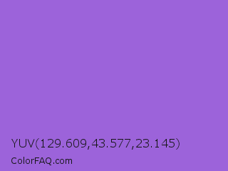 YUV 129.609,43.577,23.145 Color is a light violet color and the nearest color is Dark Pastel Purple #966fd6. Hex code #9c63da and RGB value is rgb(156,99,218). In RGB color space, this color is composed of 61% red, 39% green, 85% blue, In CMYK color space, this color is composed of 28% cyan, 55% magenta, 0% yellow , 15% black , In HSL color space, this color has a hue angle of 269° , 62% saturation and 62% lightness.