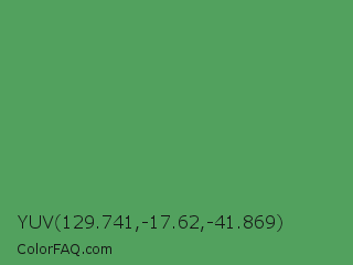 YUV 129.741,-17.62,-41.869 Color is a normal green color and the nearest color is Fruit Salad #4f9d5d. Hex code #52a15e and RGB value is rgb(82,161,94). In RGB color space, this color is composed of 32% red, 63% green, 37% blue, In CMYK color space, this color is composed of 49% cyan, 0% magenta, 42% yellow , 37% black , In HSL color space, this color has a hue angle of 129° , 33% saturation and 48% lightness.