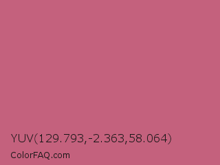 YUV 129.793,-2.363,58.064 Color is a normal rose color and the nearest color is Cinnamon Satin #cd607e. Hex code #c4617d and RGB value is rgb(196,97,125). In RGB color space, this color is composed of 77% red, 38% green, 49% blue, In CMYK color space, this color is composed of 0% cyan, 51% magenta, 36% yellow , 23% black , In HSL color space, this color has a hue angle of 343° , 46% saturation and 57% lightness.
