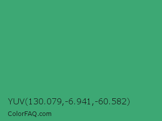 YUV 130.079,-6.941,-60.582 Color is a normal green color and the nearest color is Ocean Green #41aa78. Hex code #3da874 and RGB value is rgb(61,168,116). In RGB color space, this color is composed of 24% red, 66% green, 45% blue, In CMYK color space, this color is composed of 64% cyan, 0% magenta, 31% yellow , 34% black , In HSL color space, this color has a hue angle of 151° , 47% saturation and 45% lightness.