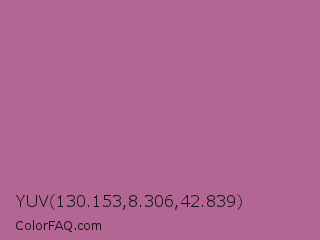 YUV 130.153,8.306,42.839 Color is a normal magenta color and the nearest color is Pearly Purple #b768a2. Hex code #b36693 and RGB value is rgb(179,102,147). In RGB color space, this color is composed of 70% red, 40% green, 58% blue, In CMYK color space, this color is composed of 0% cyan, 43% magenta, 18% yellow , 30% black , In HSL color space, this color has a hue angle of 325° , 34% saturation and 55% lightness.