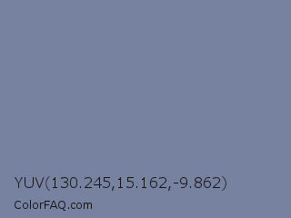 YUV 130.245,15.162,-9.862 Color is a normal blue color and the nearest color is Shadow Blue #778ba5. Hex code #7782a1 and RGB value is rgb(119,130,161). In RGB color space, this color is composed of 47% red, 51% green, 63% blue, In CMYK color space, this color is composed of 26% cyan, 19% magenta, 0% yellow , 37% black , In HSL color space, this color has a hue angle of 224° , 18% saturation and 55% lightness.