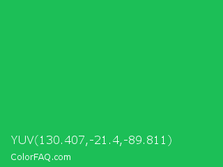 YUV 130.407,-21.4,-89.811 Color is a normal green color and the nearest color is Malachite #0bda51. Hex code #1cbf57 and RGB value is rgb(28,191,87). In RGB color space, this color is composed of 11% red, 75% green, 34% blue, In CMYK color space, this color is composed of 85% cyan, 0% magenta, 54% yellow , 25% black , In HSL color space, this color has a hue angle of 142° , 74% saturation and 43% lightness.