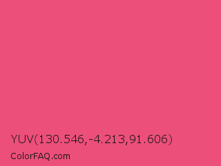 YUV 130.546,-4.213,91.606 Color is a light rose color and the nearest color is Dark Pink #e75480. Hex code #eb4f7a and RGB value is rgb(235,79,122). In RGB color space, this color is composed of 92% red, 31% green, 48% blue, In CMYK color space, this color is composed of 0% cyan, 66% magenta, 48% yellow , 8% black , In HSL color space, this color has a hue angle of 343° , 80% saturation and 62% lightness.