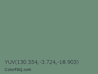 YUV 130.554,-3.724,-18.903 Color is a normal green color and the nearest color is Laurel #749378. Hex code #6d8f7b and RGB value is rgb(109,143,123). In RGB color space, this color is composed of 43% red, 56% green, 48% blue, In CMYK color space, this color is composed of 24% cyan, 0% magenta, 14% yellow , 44% black , In HSL color space, this color has a hue angle of 145° , 13% saturation and 49% lightness.
